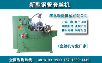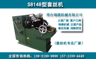 瑞捷套絲機設備采用液壓裝置成功解決勞動強度大,效率低,且無定位裝置,絲扣長短難控制等弊端,可一次型完成螺紋加工成型且螺紋牙形飽滿光滑。套絲機的主要部件及結構是由套絲機床的傳動系統,支架系統,切線板牙頭,定位裝置及液壓系統組成,工作時只要將工件裝入夾鉗,其余程序將自動完成,操作簡單,通俗易懂,瑞捷套絲機廠家直銷,質量有保證,減少不必要的中間環(huán)節(jié),為客戶帶來實實在在的優(yōu)惠政策,歡迎新老客戶洽談合作事宜和來電咨詢.